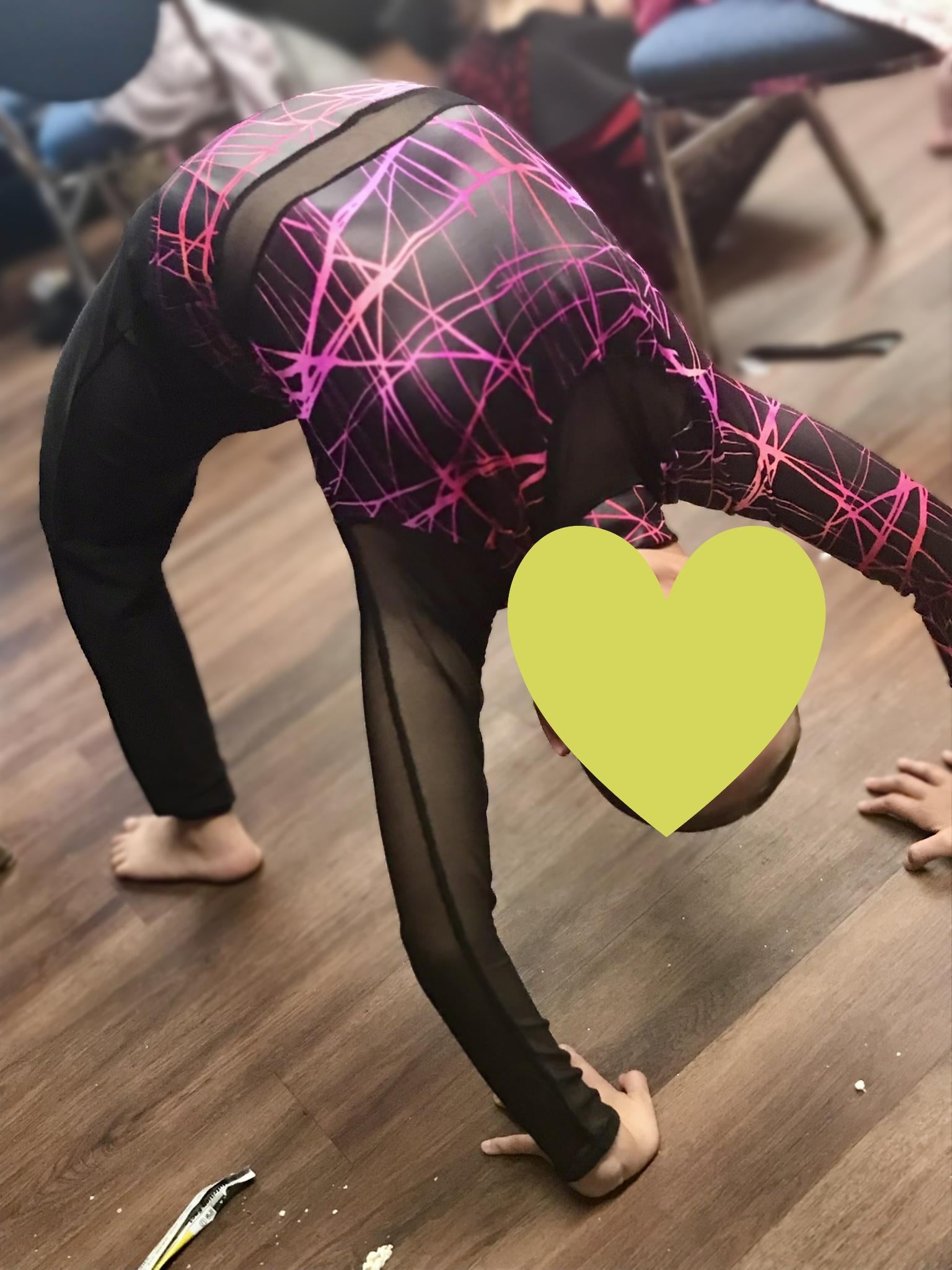 A Wish Come True Asymmetrical Mesh Unitard – Black/Neon Pink – Child XL (CXL)